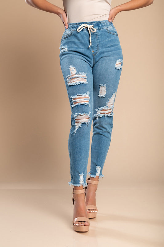 Tight jeans with a high waist and slits Stefana, sky blue